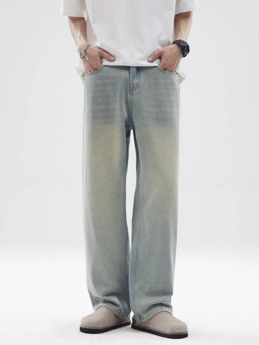 Men's Full Size Vintage Washed Wide Leg Relaxed Fit Jeans Plus Size