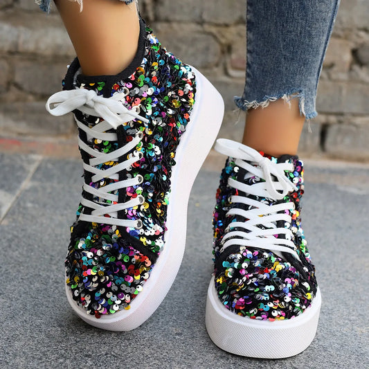 Sold outSequin Round Toe Platform Sneakers