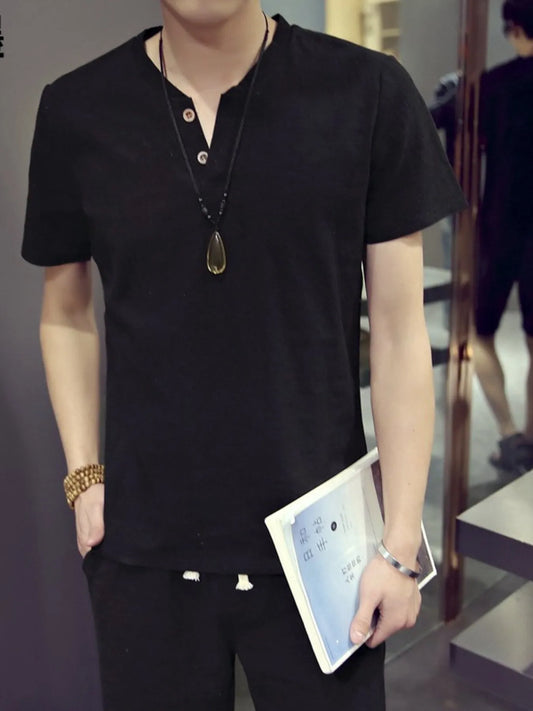 Men's Plus Size Notched Short Sleeve T-Shirt