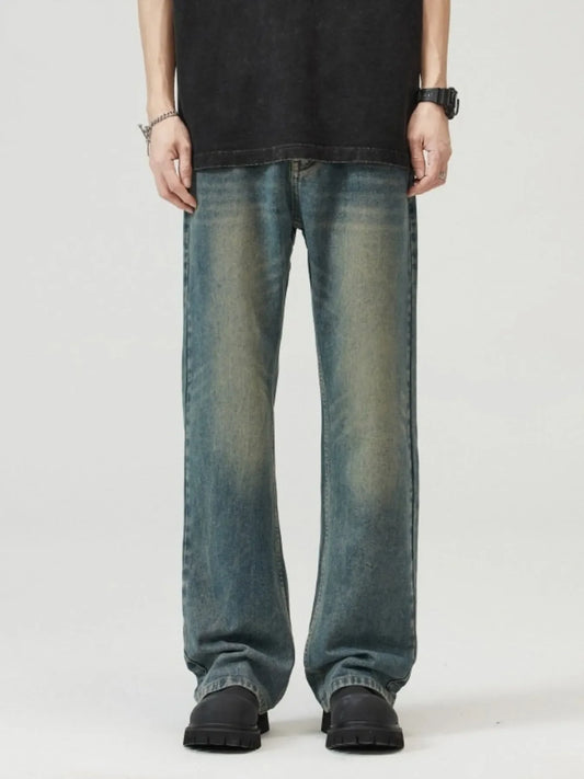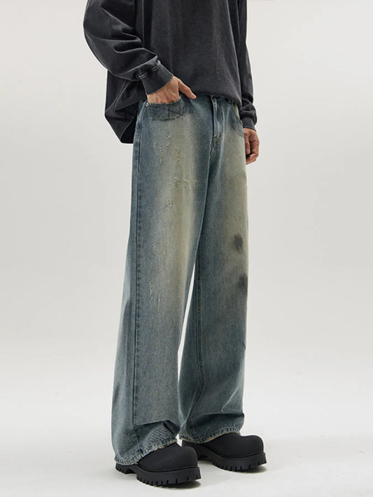 Men's Full Size Vintage Washed Wide Leg Relaxed Fit Jeans Plus Size