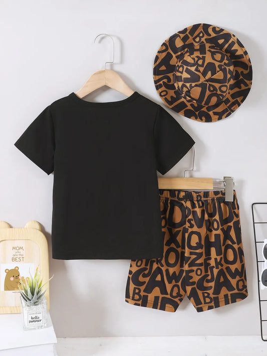 Children's Round Neck Cartoon Graphic T-Shirt and Shorts Set