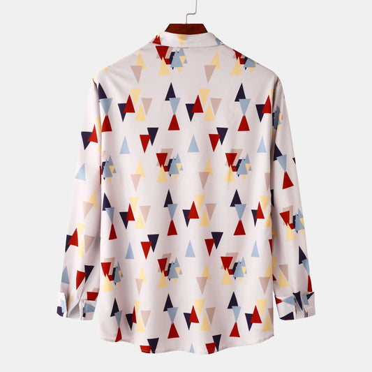 Men's Geometric Triangle Print Casual Button-Up Shirt