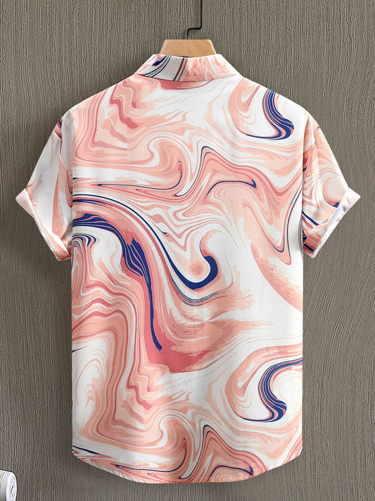 Men's Watercolor Stripe Print Long Sleeve Shirt
