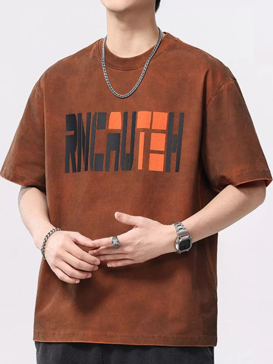 Men's Plus Size Round Neck Letter Graphic T-Shirt