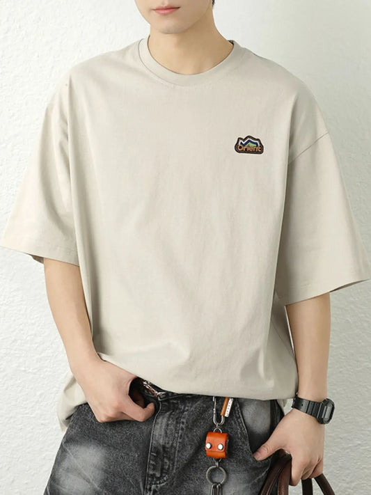 Men's Plus Size Embroidered Round Neck Half Sleeve T-Shirt