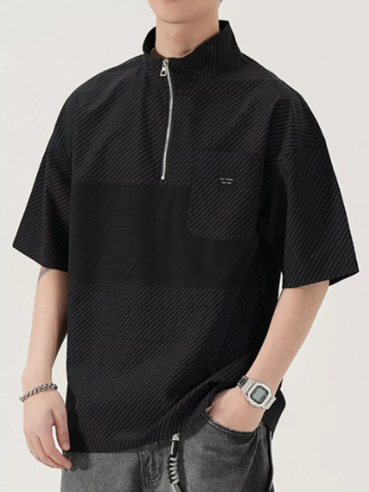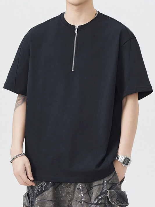 Men's Plus Size Half-Zip Oversized T-Shirt